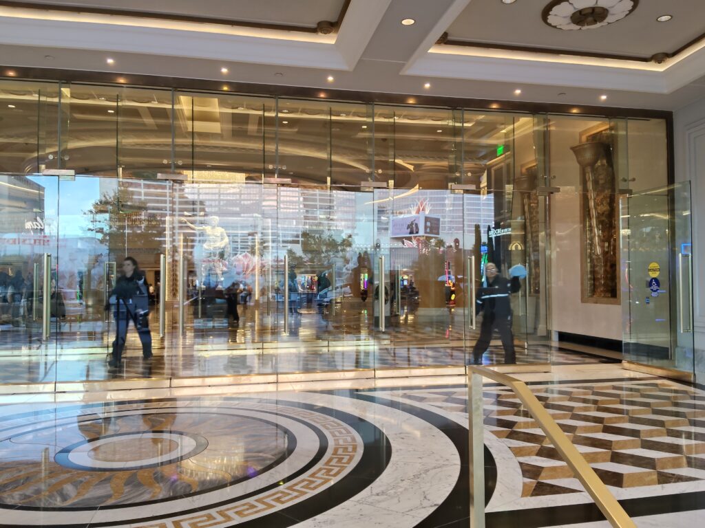As I walked the perimeter, what struck me most was how calm the environment felt. Cars pulling in and out of the porte cochère. People stopping to take photos. Couples wandering without any obvious urgency. It didn’t feel like a place pushing for your money in the way some Strip properties do. It felt like a place confident enough to wait. That confidence is important.